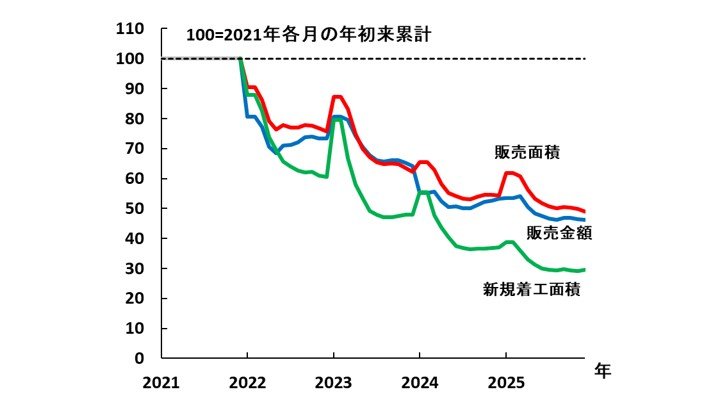 新築不動産市況の推移(各月年初来累計の2021年同期比)