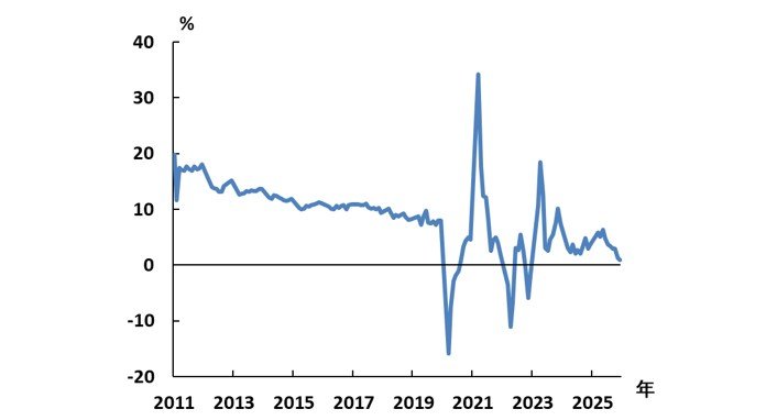 そうした中で起きた不動産市場の低迷は、関連需要と家計心理の双方から消費を押し下げている。住宅販売の落ち込みは建設資材や家具、家電など耐久消費財の需要を直接押し下げるほか、製造業の稼働率低下や雇用・所得環境の悪化を通じて家計を圧迫する。さらに、住宅価格の下落が家計資産の評価額を目減りさせ、将来不安から消費を抑制する「逆資産効果」を生じさせる。